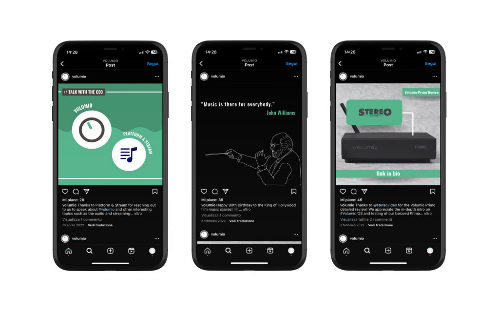 Per Volumio, azienda leader nello streaming musicale ad alta fedeltà, ho contribuito alla creazione di progetti grafici sia per il web che per la stampa. Il mio lavoro ha incluso la progettazione di elementi visivi per il sito e il branding di prodotti. Ogni progetto grafico è stato pensato per rispecchiare l'artigianalità italiana e l'innovazione tecnologica che contraddistingue il marchio, mantenendo un design pulito e coerente con l'identità dell'azienda.